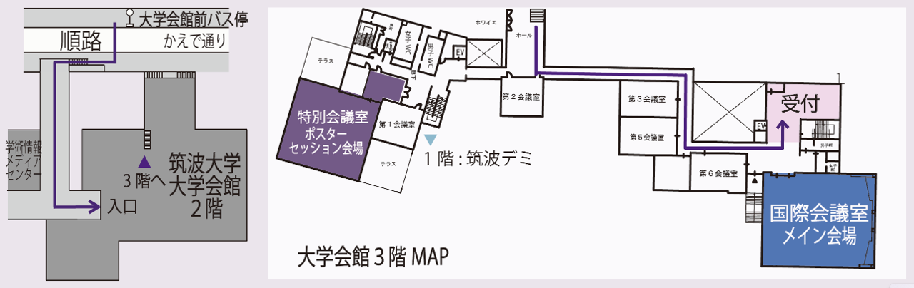 筑波大学 大学会館 3階 (メイン会場・受付:国際会議室、ポスターセッション会場:特別会議室 ※会場マップ)